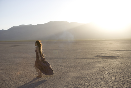 続いての撮影は、ドレスに身を包んだCHISAが裸足で荒野の砂漠を歩くというシーン!